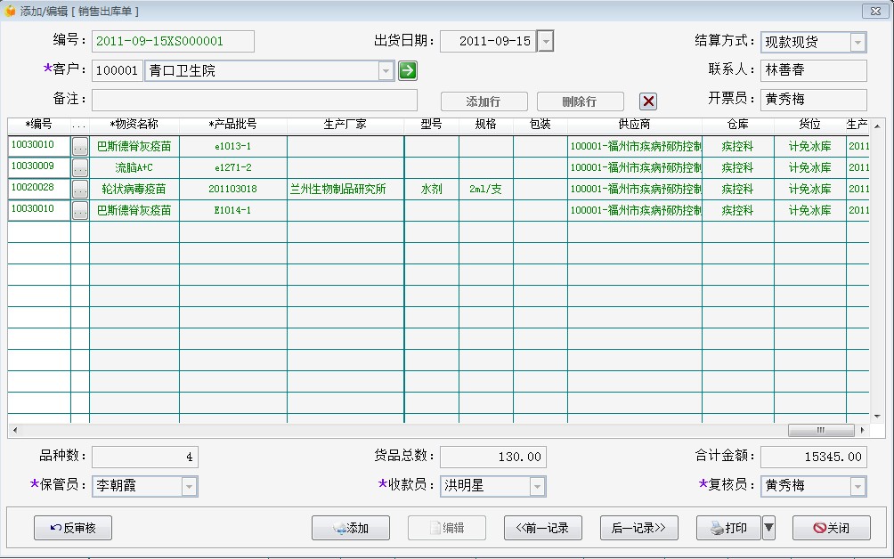 本系统属于通用软件,可涵盖各行业。(在疾控中心,应用于疫苗、结防药、检验试剂、办公用品的管理)